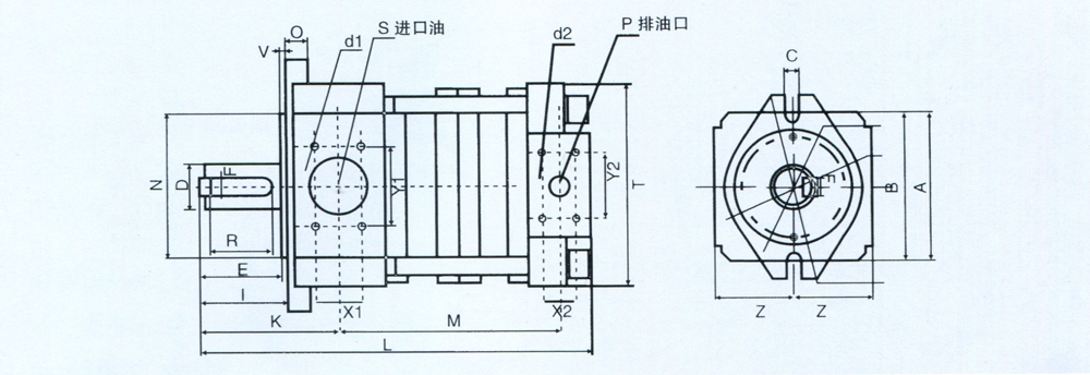 注:“NT泵軸伸符合GB2353。1-80液壓泵和馬達(dá)安裝法蘭和軸伸的尺寸系列和標(biāo)記”(即Iso9309/2)