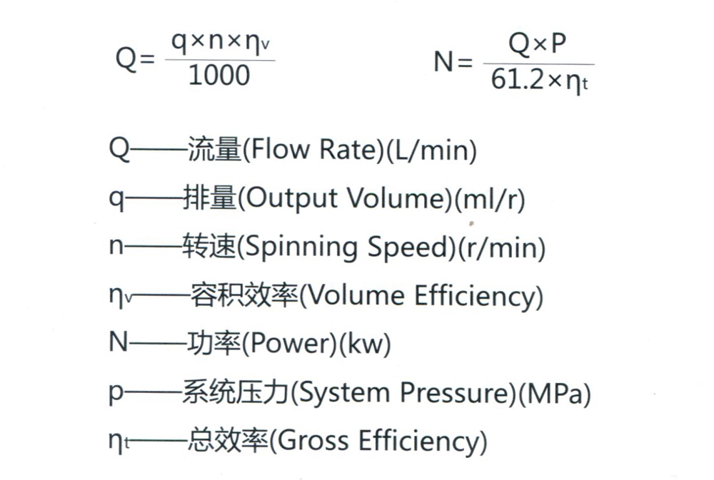 用戶應(yīng)根據(jù)液壓系統(tǒng)實(shí)際工況(壓力、流量)和轉(zhuǎn)速,計(jì)算岀泵的排量,選擇好型號(hào)即可算出泵需要的功率隨后確定電機(jī)或其它的動(dòng)力源。